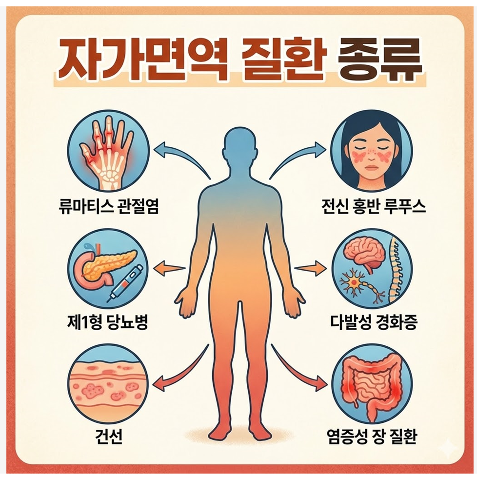 인간의 면역 시스템은 외부의 바이러스나 세균으로부터 몸을 보호하는 방어막 역할을 하지만, 때로는 이 시스템이 오작동하여 자신의 정상적인 세포와 조직을 공격하기도 합니다. 이러한 현상으로 발생하는 다양한 질병군을 통칭하여 자가면역 질환 종류라고 부르며, 침범 부위에 따라 증상이 매우 다양하게 나타납니다.