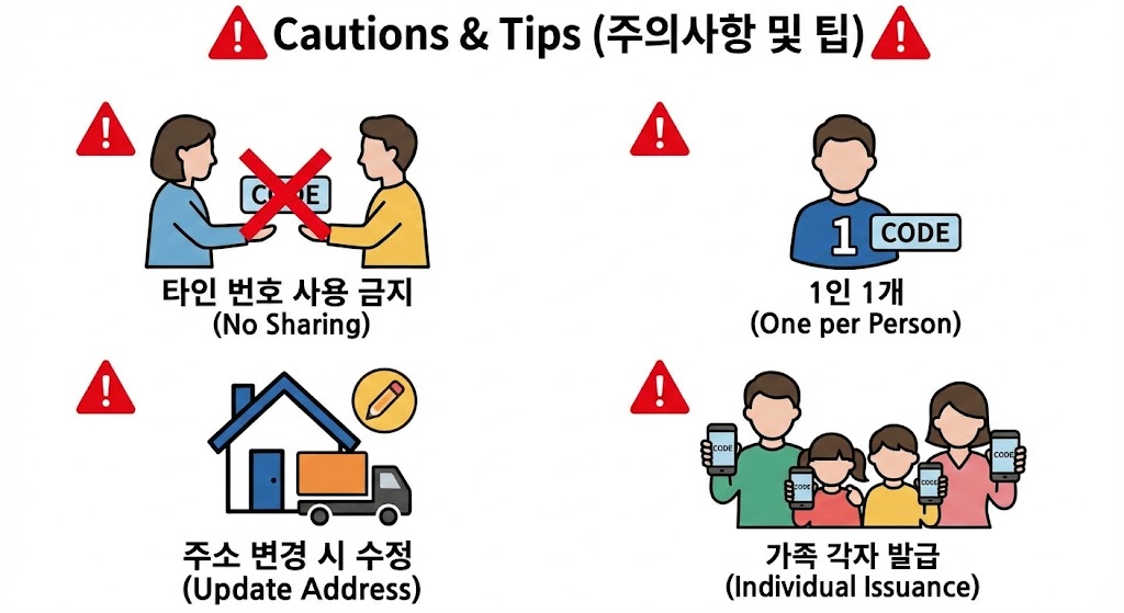 - 타인의 번호를 대신 사용하면 불법이며, 통관 지연이나 불이익이 발생할 수 있습니다.