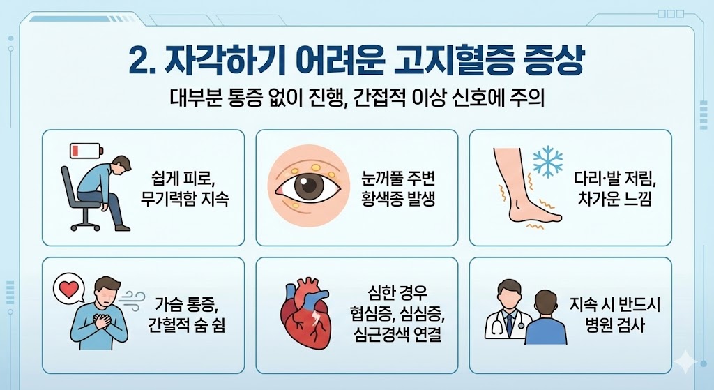 2. 자각하기 어려운 고지혈증 증상, 어떤 것들이 있을까요?