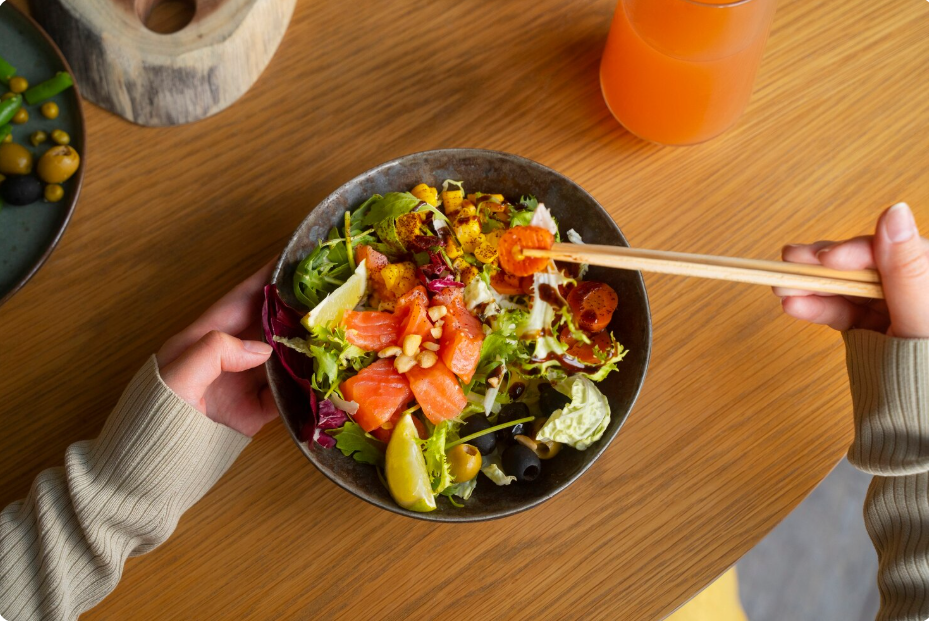 - 식이섬유 우선 섭취: 채소를 먼저 먹고 단백질, 탄수화물 순으로 먹는 '거꾸로 식사법'은 혈당의 급격한 상승을 억제합니다.