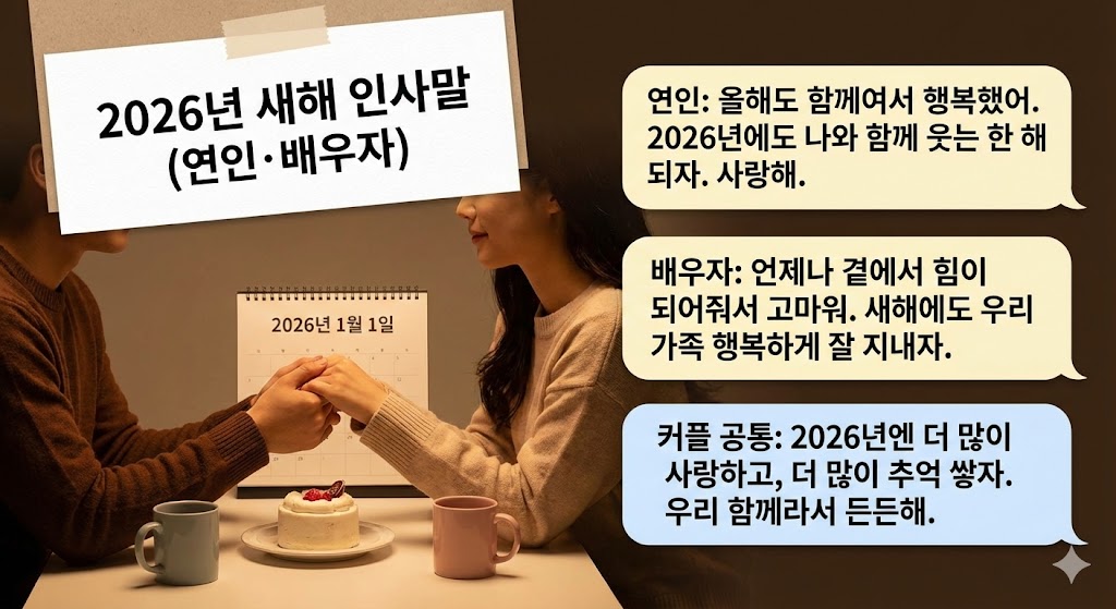 | 연인 | 올해도 함께여서 행복했어. 2026년에도 나와 함께 웃는 한 해 되자. 사랑해. |