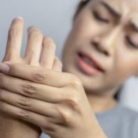 손가락을 굽히고 펼 때 사용하는 힘줄에 염증이 생기면 '딸깍'거리는 소리와 함께 손가락 마디 통증이 발생합니다. 이는 반복적인 마찰로 인해 힘줄이 두꺼워져 통로를 제대로 통과하지 못하기 때문입니다.