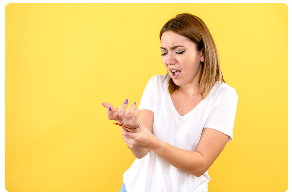 손목을 지나는 정중신경이 압박을 받으면 손바닥뿐만 아니라 손가락 끝까지 저리고 아픈 손가락 마디 통증이 유발될 수 있습니다.