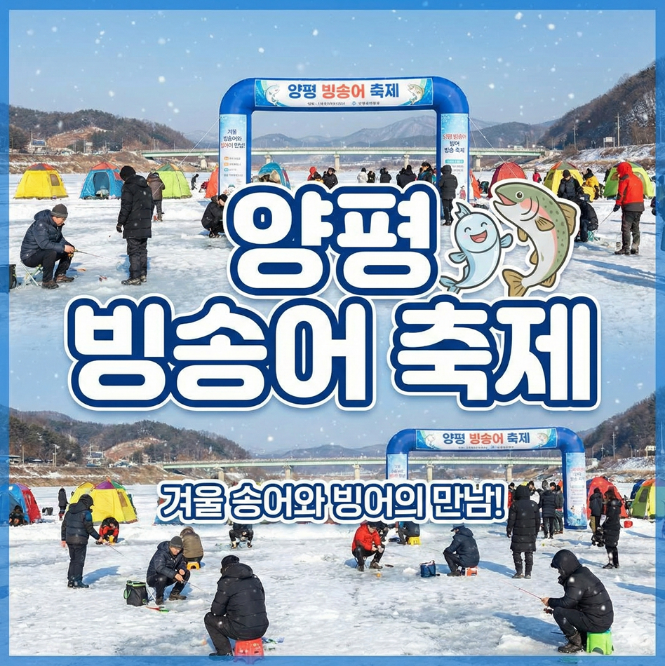 겨울의 낭만과 짜릿한 손맛을 동시에 느낄 수 있는 양평 빙송어축제가 돌아왔습니다. 경기도 양평의 맑은 물과 수려한 자연경관 속에서 펼쳐지는 이번 축제는 가족, 연인, 친구와 함께 겨울 추억을 쌓기에 최적의 장소입니다. 은빛 빙어와 황금빛 송어를 낚는 즐거움은 물론, 다양한 겨울 레포츠까지 한자리에서 즐길 수 있는 특별한 기회를 놓치지 마세요.
