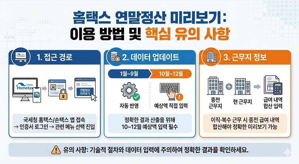 실제로 연말정산 미리보기를 실행할 때 주의해야 할 기술적인 부분과 절차를 명확히 이해해야 합니다.