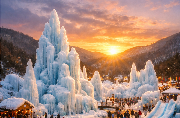 - 얼음 분수: 계곡물을 얼려 만든 거대한 얼음 분수는 이곳의 랜드마크이며 최고의 포토존입니다.