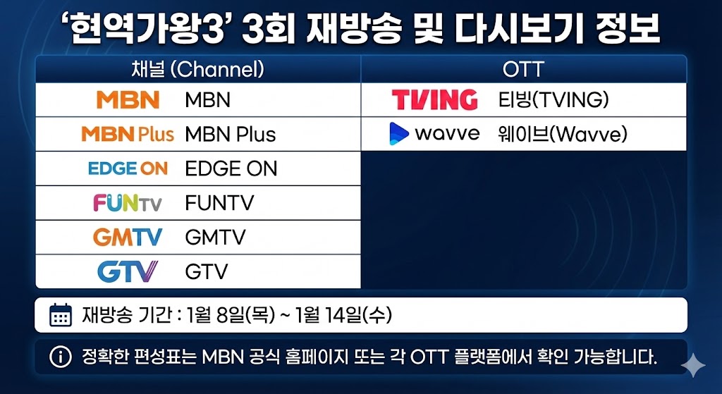 정확한 편성표는 MBN 공식 홈페이지 또는 각 OTT 플랫폼에서 확인 가능합니다.